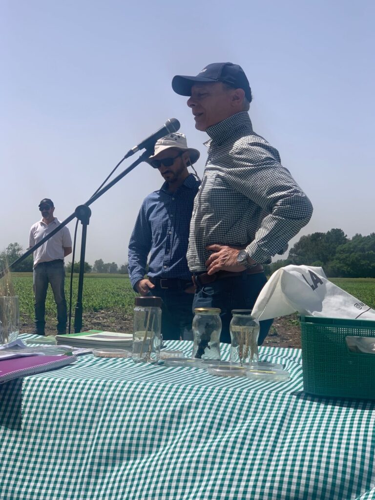 Tras las disertaciones, los participantes realizaron una recorrida por los ensayos a campo, oportunidad para observar el comportamiento de los materiales y el impacto de las tecnologías aplicadas bajo condiciones reales de producción.